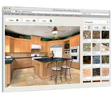 The website kitchen designer allows your website visitors to design their kitchen online, comparing how your different stone products will look on their countertops, backsplashes and floors.