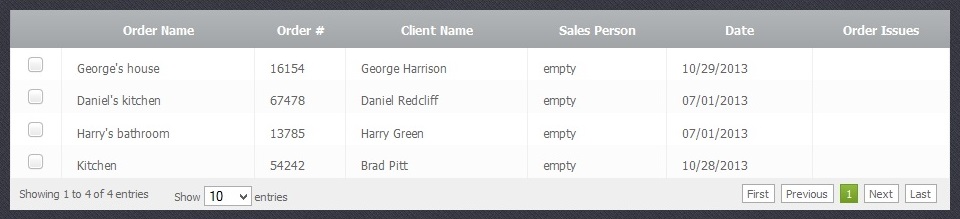 With the help of this section you can edit and control list of your orders. Add new and delete those which are done. As well here you may quickly find the order you need among lots of others using search.