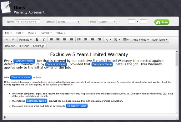 Use help section of the Docs module to get detailed information about how to add templates of documents and edit them before printing. Here we give an example of how such a template can look like: