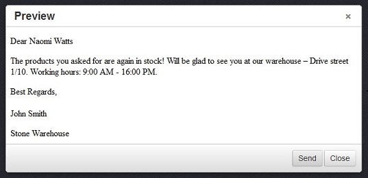 at the main page of the corresponding module and choose one of your templates. Here is how your email will look like before you send it: