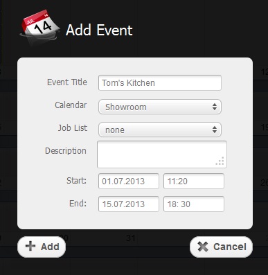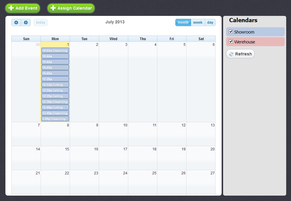 To add a new event you have to click on “Add Event” button or on any free date on the calendar.