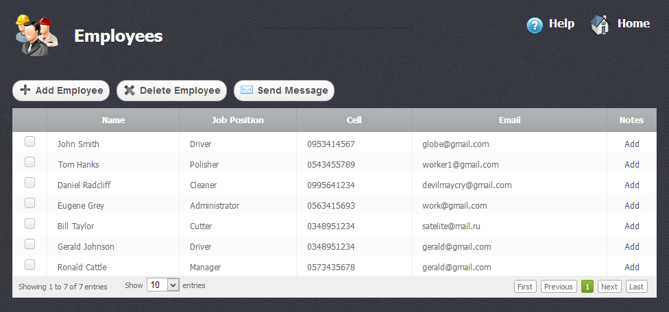 In this module you can control and edit the list of your employees. Add new and remove them to your wish, send them messages and print related documentation. Besides, you will be able to assign individual calendars to concrete employees and give the full or limited access to the easystoneshop.