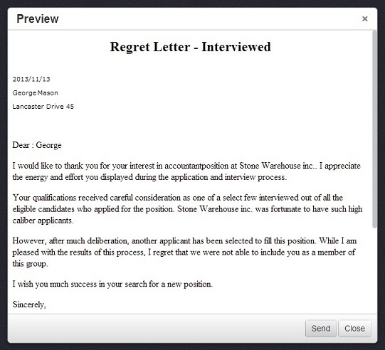 opposite the employee you wish to send the email to and choose one of your templates. Here is how your email will look like before you send it: