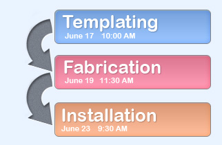 After you create a job or sale, EasyStoneShop will automatically schedule all necessary tasks for the job and assign them to the appropriate staff. Furthermore it will establish all tasks in a queue so that each step in a job logically follows other steps, for instance it will only schedule countertop fabrication after templating.