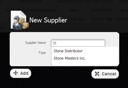 At first you sign in and go to the “Suppliers” module. Adding a new supplier you do not give your name to the new supplier, but choose from the list of already existing ones. Having typed first letters of a supplier's name you will see him in the list at once. Then you press apply to finish the adding. As a result you have got a real supplier with his own list of offered remains, solid slabs, price list and profile.